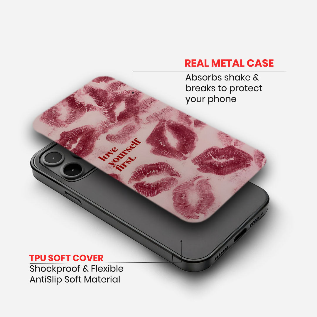 The "Kisses of Self-Care Case" has a soft pink background with a gentle, inviting design. It emphasizes self-love and nurturing, making it a perfect reminder to prioritize your well-being. A charming and supportive accessory to inspire daily self-care.